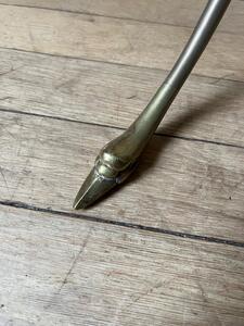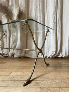 Table basse en bronze, laiton et verre. Pieds col de cygne. Vers 1960. Longueur 87 cm. Largeur 48 cm. Hauteur 41 cm.