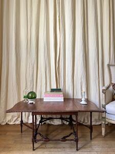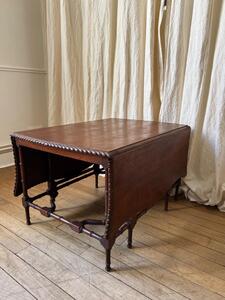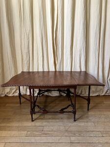 Table basse modulable à système d’abattants. Acajou et placage d’acajou. 2 abattants latéraux. Ouverte : 106 cm x 74 cm.