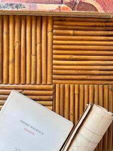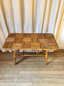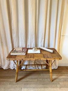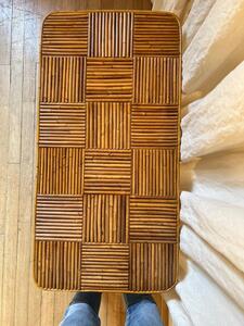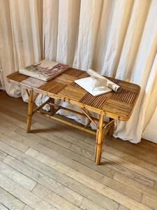 Table basse rotin bambou. Vers 1950. Longueur 92 cm. Largeur 47 cm. Hauteur 54,5 cm.