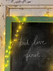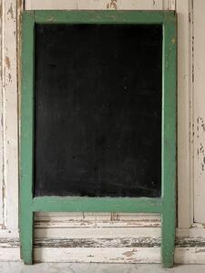 Tableau d’épicerie double-face. Bois patine verte d’origine. Vers 1950. Hauteur 118 cm. Largeur 72 cm.