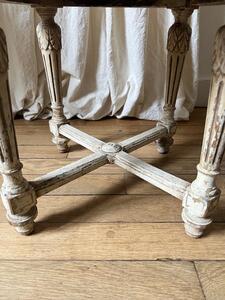 Tabouret de style Louis XVI. Époque fin XIXème. Boiserie patine d’origine. Assise retapissé d’une toile de chanvre ancienne. Diamètre 44 cm. Hauteur 44 cm.